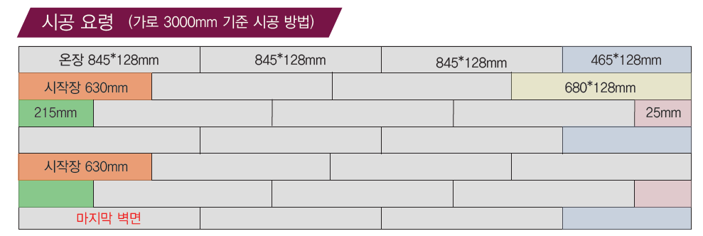 2. 매 열간 길이 방향의 이음새 사이의 간격은 반드시 25cm 이상의 간격을 유지하도록 시공한다.